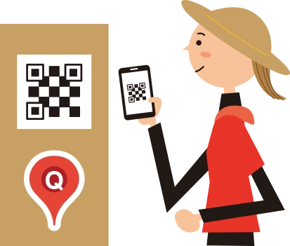スポットのQRコードをスマホで読み取り、クイズに挑戦!